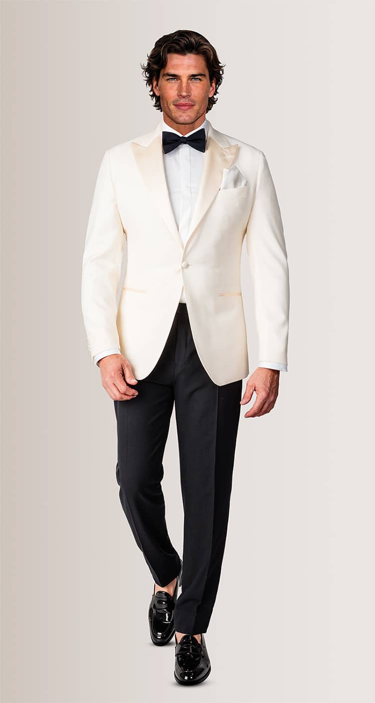 Smoking kopen? Een smoking of ook wel black tie genoemd wordt volgens de etiquette 's avonds gedragen. De smokings van ROKA hebben een perfecte pasvorm en zijn in het blauw of zwart leverbaar. De zwarte smokings hebben een shawlkraag of een klassieke opgesneden revers. (peak lapel) De blauwe smoking heeft zwarte opgesneden revers en is gemaakt van een mooie wol/stretch stof. Wil je nog meer smokings zien? Kom dan vrijblijvend langs in een van de ROKA winkels in Rotterdam, Haarlem, Enschede, Tilburg of Groningen. Een afspraak maken voor een smoking is niet nodig. Je kunt de smoking ook online bestellen. Levering binnen 3 werkdagen.